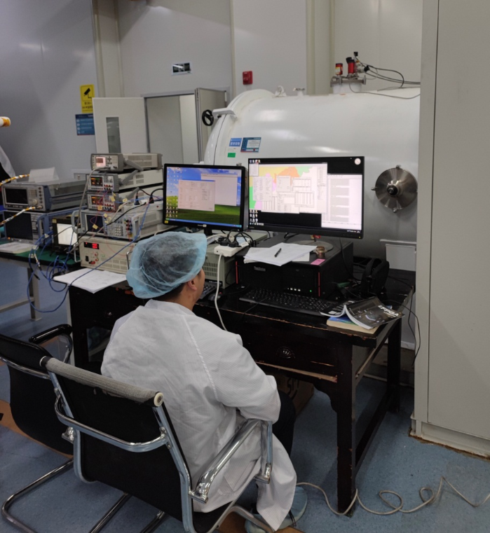 7月17日凌晨三點(diǎn),西光廠內(nèi)一片寂靜,路燈似乎也熱到發(fā)著微弱的光,偶爾聽得到一聲兩聲狗的吠叫。此時,熱真空實(shí)驗室依然燈火通明,伴隨著機(jī)器聲轟鳴作響,王玨和姚佳豪喝完第二杯咖啡,“掰開”上下眼皮,繼續(xù)守在設(shè)備前,緊緊盯著設(shè)備的功能和性能指標(biāo)。“指標(biāo)完全符合要求”!最后一個循環(huán)結(jié)束,王玨激動地說道。他和姚佳豪通宵達(dá)旦地開展大量試驗驗證, 經(jīng)過4個白天和黑夜,最終順利完成了某項目熱真空試驗。