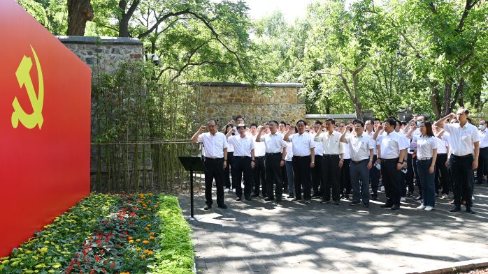 6月18日,中國電科總部紀檢監(jiān)察組、組織人事部、黨建工作部黨支部聯(lián)合開展“傳承紅色基因、投身強國興軍”黨史學習教育主題黨日活動。黨組書記、董事長陳肇雄,黨組副書記李守武,紀檢監(jiān)察組組長彭岡,集團公司老領導呂新奎以普通黨員身份參加活動。