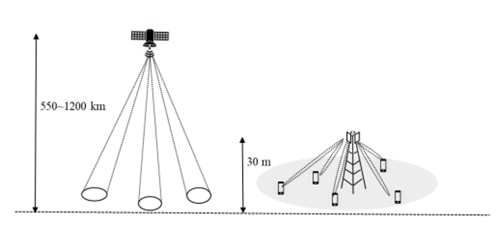 圖 3 衛星波束與蜂窩基站覆蓋方式對比